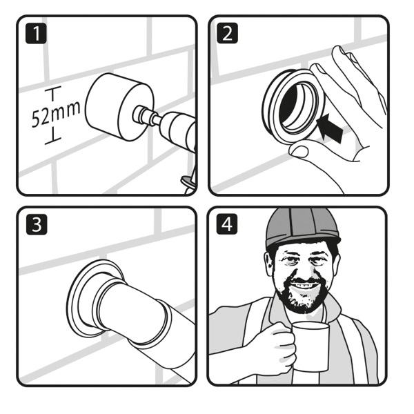 • Helps to prevent damage to pipework that may be caused by sharp brickwork/masonry after core drilling