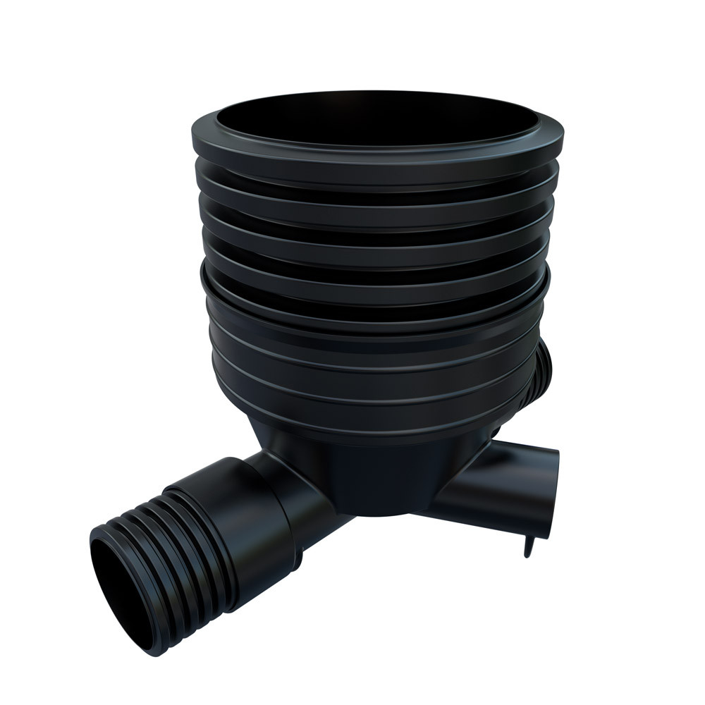 Relatively lightweight with no machinery or lifting equipment needed, this model has 225mm Twinwall main channel rocker pipe connections, as well as two optional side inlets that are moulded blanked. This allows for seamless opening and fitting with 150mm Twinwall rocker pipes, or a wall seal can accomplish 110mm or 160mm smooth pipe connections.