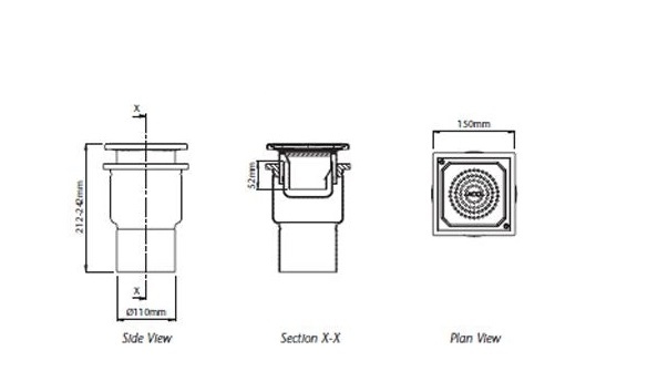 Features & Benefits: ACO Gully EG150 Stainless Steel 304 Telescopic Vertical Outlet - Square