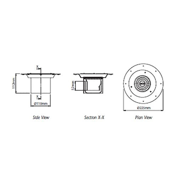 Features & Benefits: ACO Gully EG150 Stainless Steel 316 Fixed Vertical Outlet Low Level - Circular