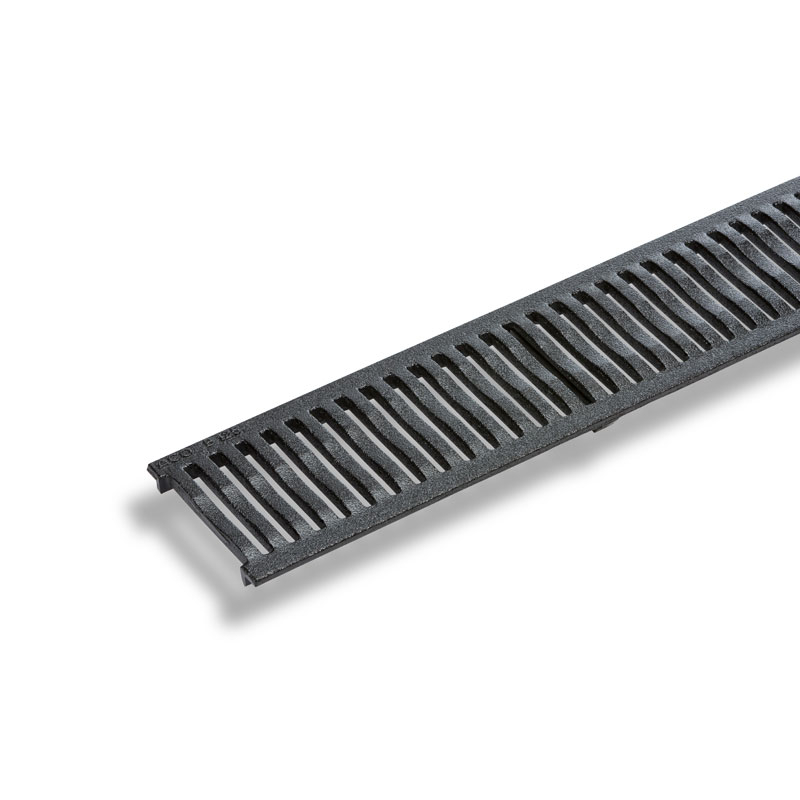 Suitable for pedestrian precincts, light vehicles, private car parks and drives, this HexDrain and RainDrain Heelguard Iron Grating ATec from ACO has a B125 load rating. It is a sturdy 8mm slot grating with a black corrosion-resistant coating and a robust ATec finish, which delivers up to 10 times longer protection.