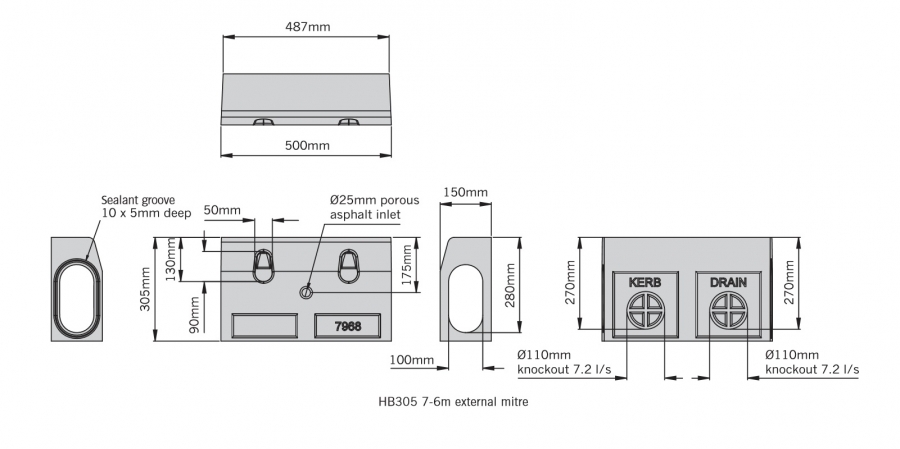 Features & Benefits: ACO KerbDrain HB305 Half Battered 7m-6m External Mitre Unit - 487mm/500mm