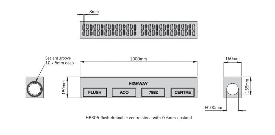 Features & Benefits: ACO KerbDrain HB305 Half Battered Flush Drainable Centre Stone 1000mm