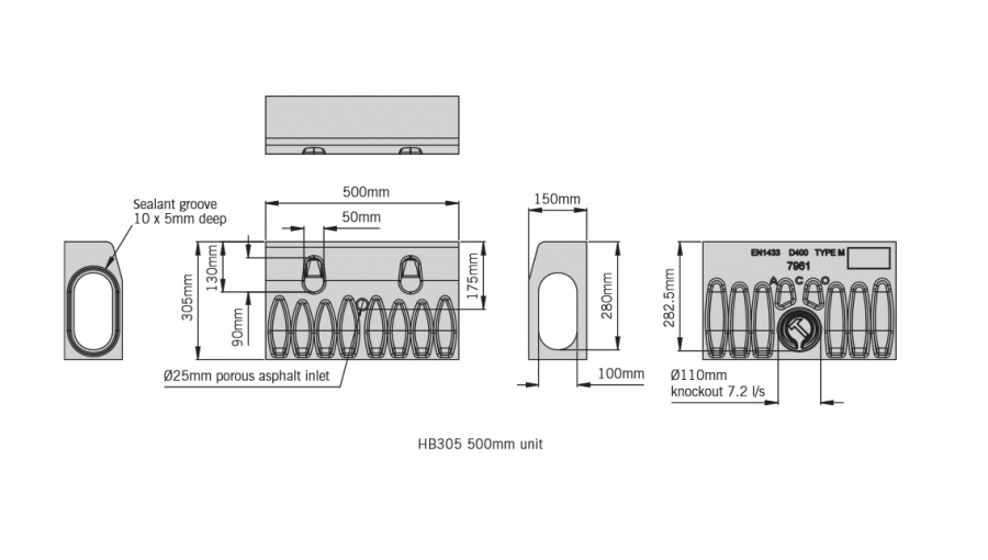 Features & Benefits: ACO KerbDrain HB305 Half Battered Kerb Unit - 500mm
