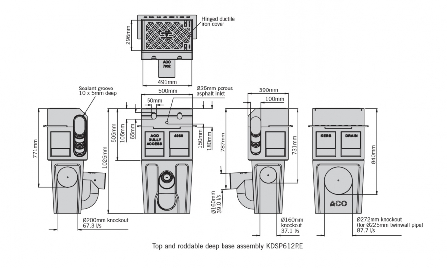 Features & Benefits: ACO KerbDrain SP280 Splayed Gully Top and Roddable Deep Base Unit
