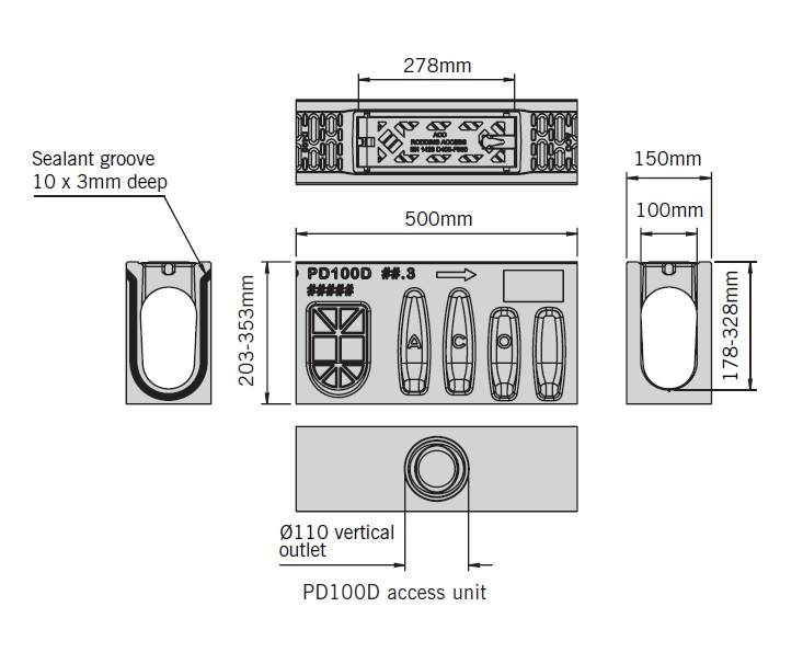 Features & Benefits: ACO MonoDrain 265mm x 150mm x 500mm Access Unit - Grey
