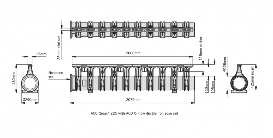 Features & Benefits: ACO Qmax 225 Slot Channel with Q-Flow Iron Edge Rail 2m