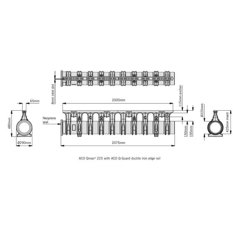 ACO Qmax 225 Slot Channel with Q-Flow Steel Edge Rail 2m