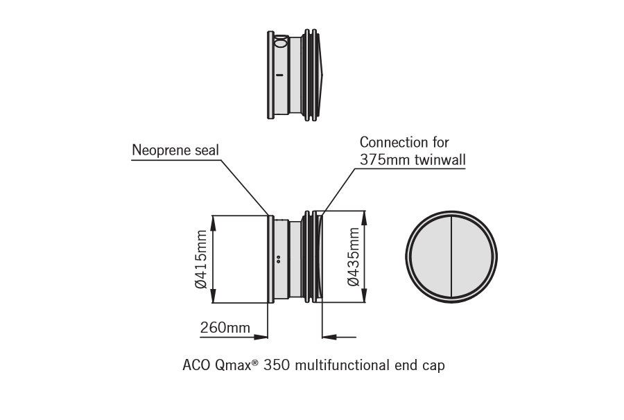 This ACO Qmax® 350 Slot Channel Multifunctional End Cap is part of ACO's excellent Qmax® range of slot channel drainage products, serving to seal the outlets of their 350 variants. Sitting snugly and securely in the unit, this cap seals the circular bore on the opposite side of the drain.