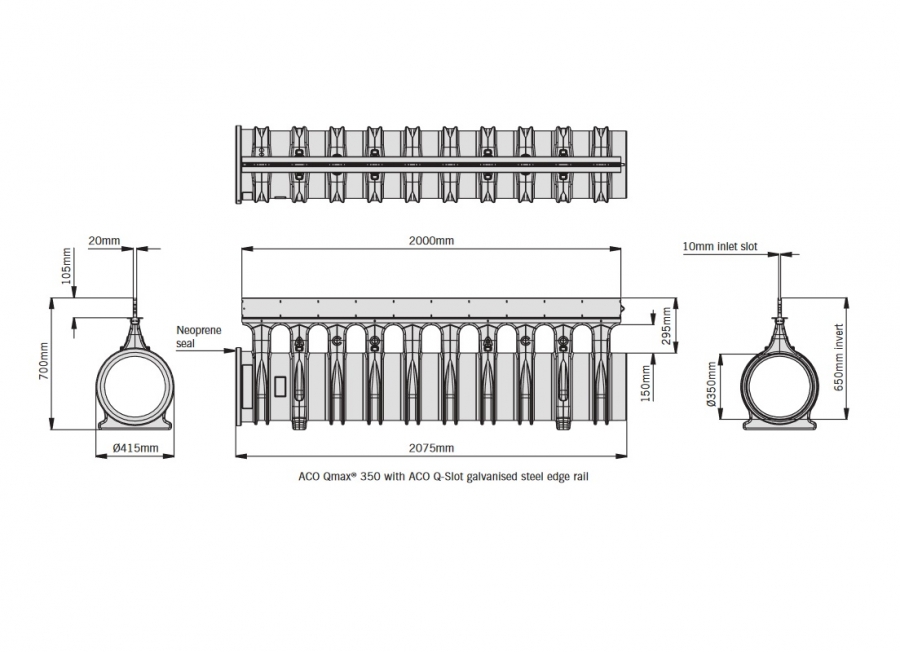 Features & Benefits: ACO Qmax 350 Slot Channel with Q-Slot Steel Edge Rail 2m