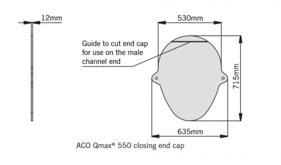 Made specifically for the unique elliptical shape of the Qmax range, this ACO Qmax 550 Slot Channel Closing End Cap ensures that 550 channels seal easily and securely. It fits well with the 550 components, which make use of sustainable and durable recycled MDPE for constructio... Read More