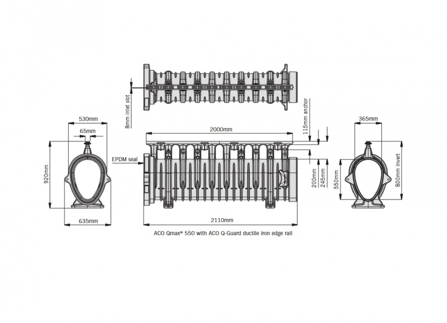 Features & Benefits: ACO Qmax 550 Slot Channel with Q-Guard Iron Edge Rail 2m