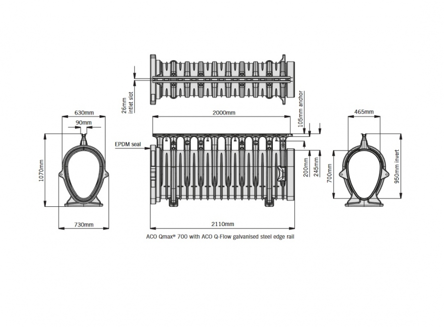 Features & Benefits: ACO Qmax 700 Slot Channel with Q-Flow Steel Edge Rail 2m