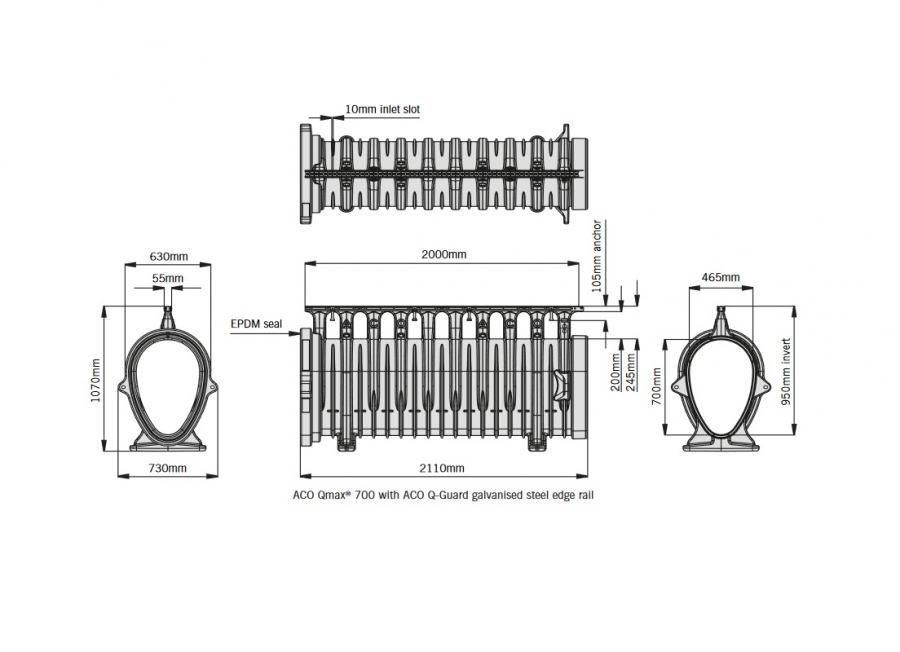 Features & Benefits: ACO Qmax 700 Slot Channel with Q-Guard Steel Edge Rail 2m