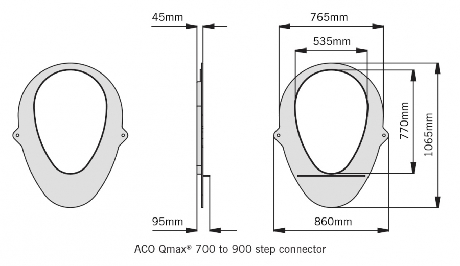 As part of ACO's excellent Qmax range of heavy-duty, high-load slot channel drainage products, this Channel Step Connector serves to connect their 700 variant to the larger 900 variant and vice versa. Fitting snugly and securely, it seals the unique elliptical bores of both units.