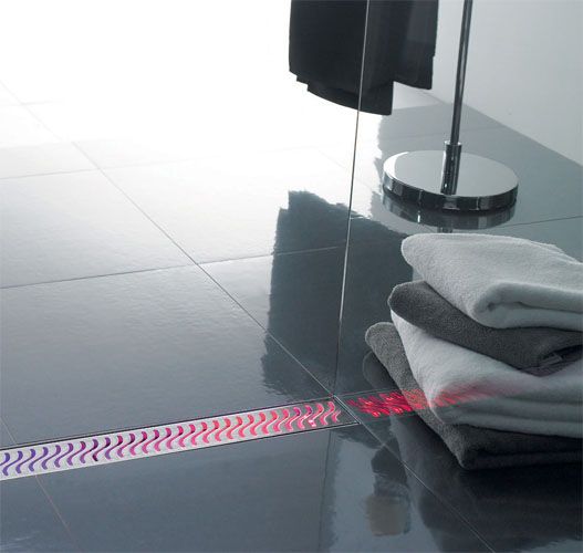 Austenitic stainless steel linear drainage channels with clean lines that characterise today's trends in bathroom design.