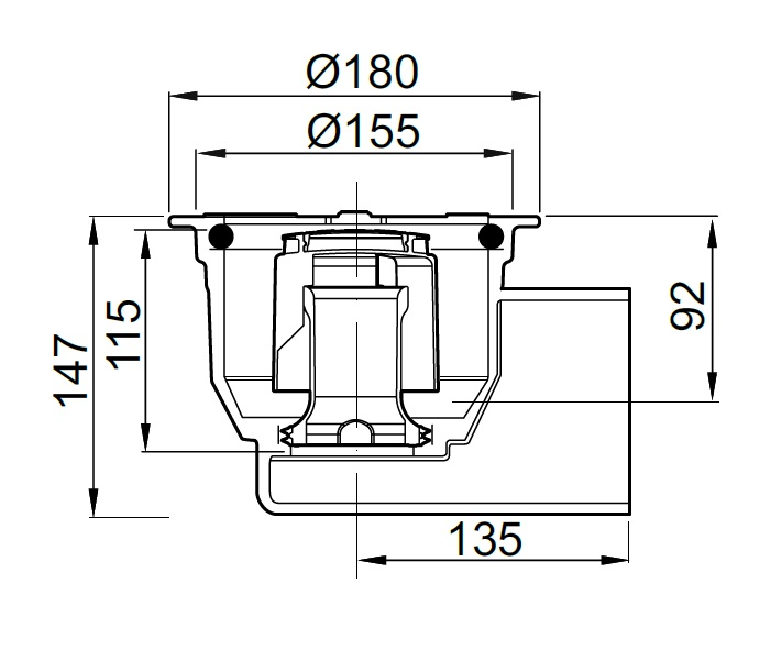 ACO TotalFlow Gully Cast Iron Horizontal Outlet with Location Flange - 180mm
