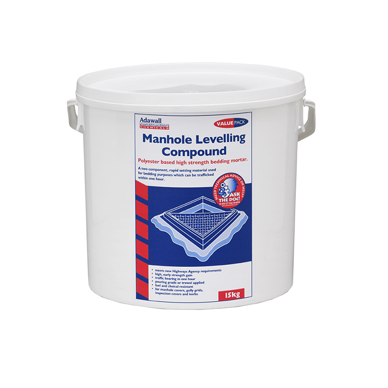 Adawall’s Manhole levelling compound has been specifically developed for the resetting of manhole frames and other street ironwork in accordance with the recommendations of the Design Manual for Roads and Bridges HD 27/94, “Mortars for bedding ironwork” Vol 7 Sec 2.