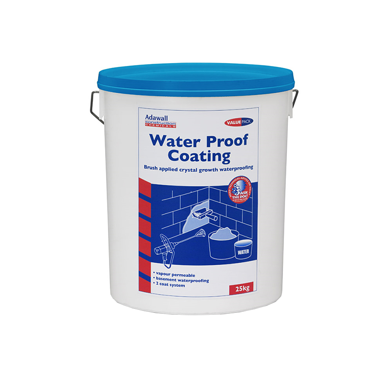 Adawall Waterproof Coating can be applied to new or old structurally sound surfaces. It can be applied either to the negative or the positive side and will negate dampness in ground water permeation even under hydrostatic pressure.
