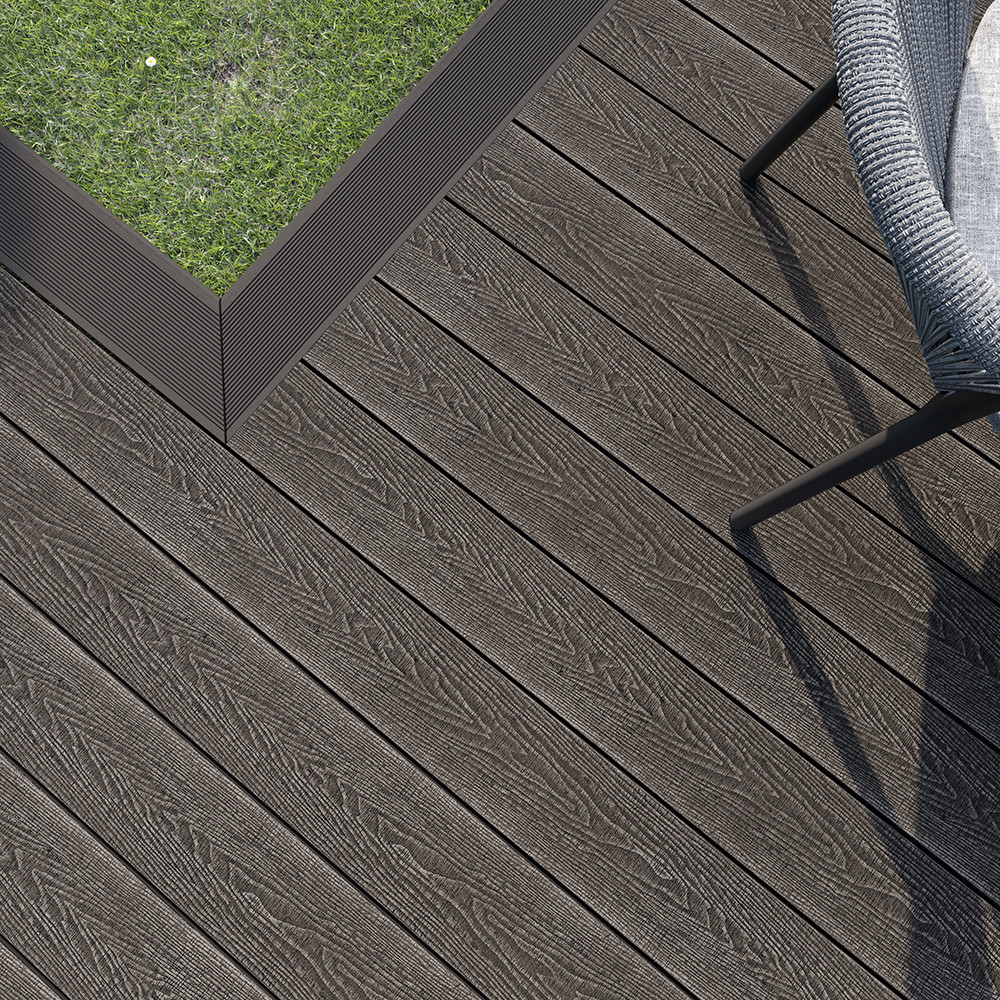 This Graphite decking board is a truly versatile colour that will enhance a variety of outdoor settings. Thanks to its dark neutral tones, these Graphite decking boards can complement even the most vibrant natural colours within your garden while maintaining a sophisticated and chic environment to sit, relax and enjoy your garden.