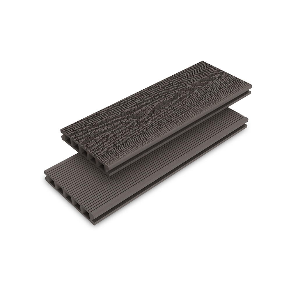 Providing flexibility for decking designs, the Allur Double-Sided Composite Decking Board has a dual design feature on either side. A natural wood grain effect on one side will work seamlessly in environments wanting to keep the visual appearance of timber whilst benefiting from its low-maintenance composite construction. On the other side, the contemporary grooved design will create eye-catching and sleek designs, perfect for gardens and outdoor spaces with a modern and more minimalist style. And thanks to its slip-resistant finish, you will be able to enjoy your decking area throughout the year.