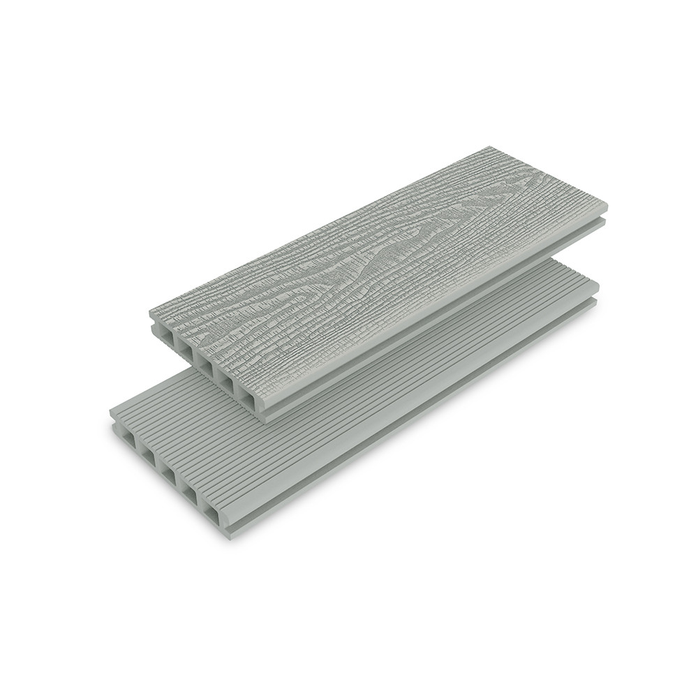 Providing flexibility for decking designs, the Allur Double-Sided Composite Decking Board has a dual design feature on either side. A natural wood grain effect on one side will work seamlessly in environments wanting to keep the visual appearance of timber whilst benefiting from its low-maintenance composite construction. On the other side, the contemporary grooved design will create eye-catching and sleek designs, perfect for gardens and outdoor spaces with a modern and more minimalist style. And thanks to its slip-resistant finish, you will be able to enjoy your decking area throughout the year.