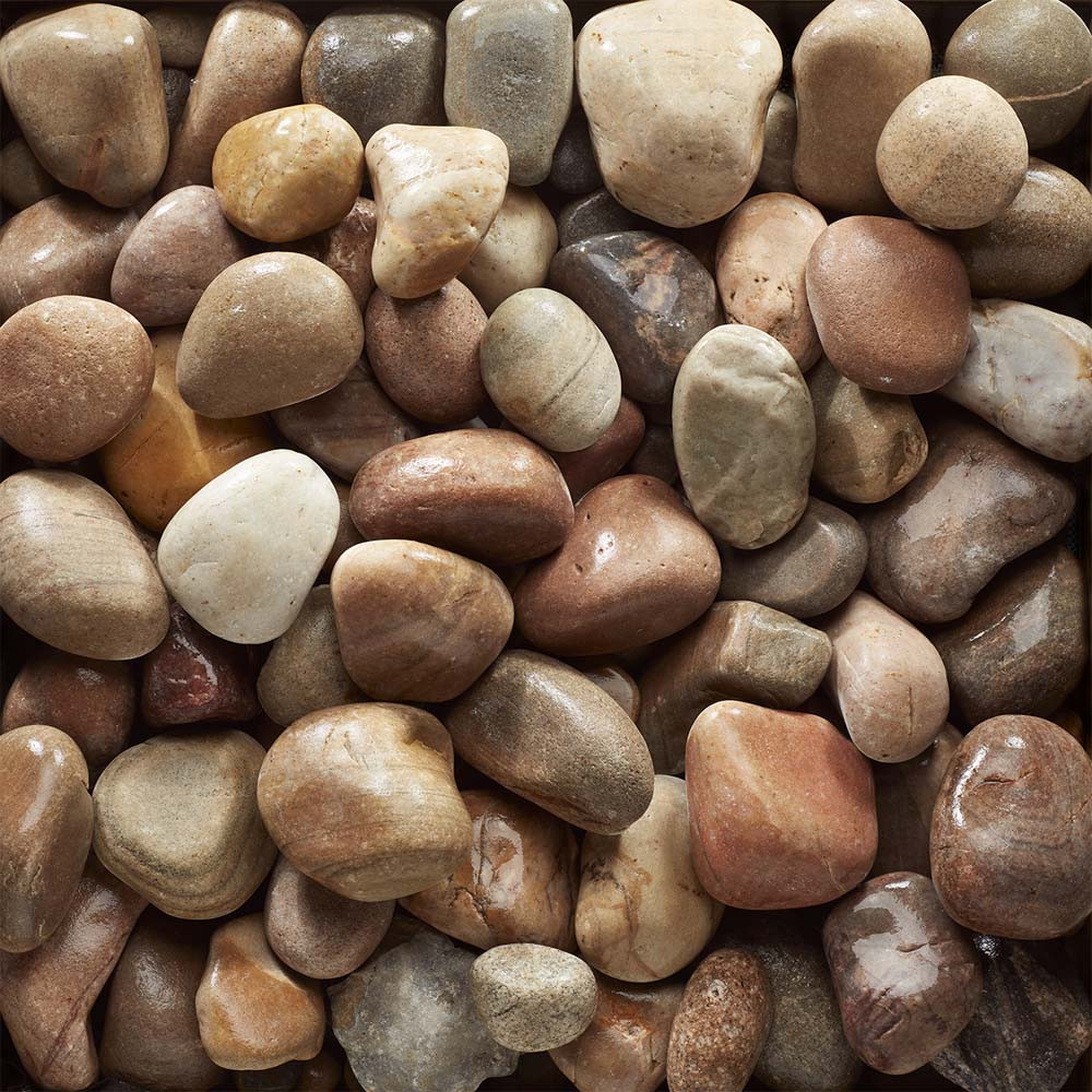 While predominantly greyish brown in colour, when wet, subtle hues emerge from the stones, including shades of blue, red, pink, white, cream and orange, making them a highly decorative and attractive feature.