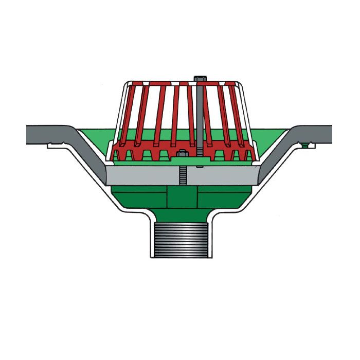 Features & Benefits: Roof Rainwater Outlet Vertical Threaded 50mm Aluminium - Dome Grate
