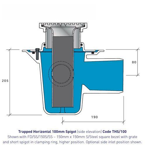 DISCON - Aluminum Floor Drain Body Trapped Horizontal Spigot - 100mm