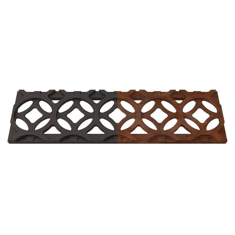 • There are three stunning cast iron designs to pick from and even more available for special order when you call us. You can also contact us for more information on altering or delaying the ageing process of the cast iron gratings.
