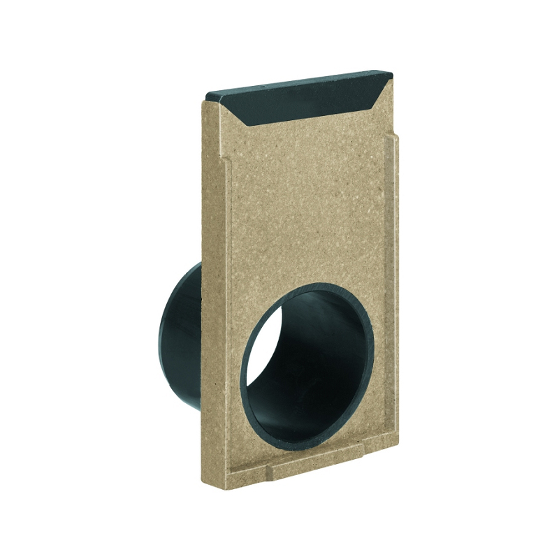 Ideal for completing your installation of the polyconcrete Aquascape drain channel system, this end plate with an outlet has been made to be the same colour as the channel bases. The system can coordinate to provide a capillary-free linear drain with less than 0.05% water absorption.