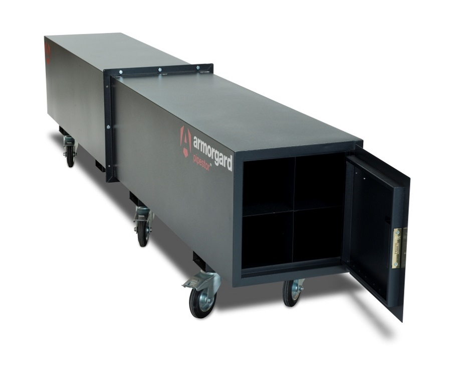 The Pipestor™ portable secure storage trunk, gives you the peace of mind that your copper piping is safe 24/7. The interior is divided into four sections to accommodate different sizes and styles of pipes – including plastic and metal conduit, trunking and cable tray – and is secured on one end with a heavy duty door and lock.