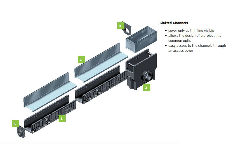 RECYFIX paverslot channels come in channel widths of 100 to 150mm and depths of 60 to 188mm. They are 1000mm long