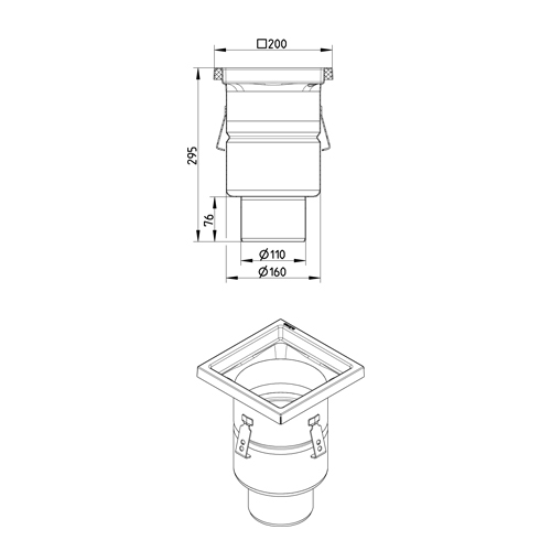 Manufactured with AISI 304 stainless steel, this Industrial Drain by Blucher is square-shaped and suitable for concrete and tiled flooring. It features a vertical outlet and a square shape that can fit seamlessly with a variety of floor spaces.