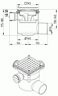 With a square adjustable shower drain, this gully is suitable for concrete and tiled floor applications with a liquid membrane and includes Ø50mm side inlets, a Ø75mm horizontal outlet and a 145mm x 145mm frame. The shower drain and adjustable shower drain are made from 304-grade stainless steel to AISI304/EN1.4301 while the removable trap is 316-grade to AISI316L/EN1.4404.