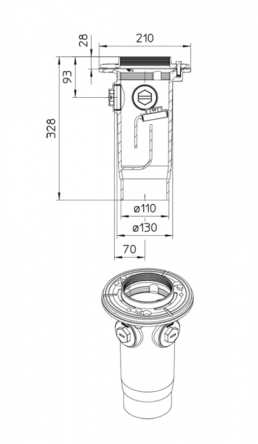 Blucher WATTS Lower Part with Side Inlets Vertical Outlet - 110mm