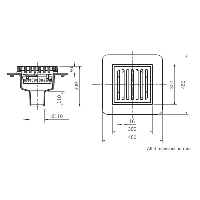 110mm spigot outlet for easy pipe connection