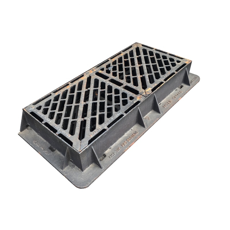 Cast Iron Double Triangular Gully Grating & Frame 1000 x 450mm - D400