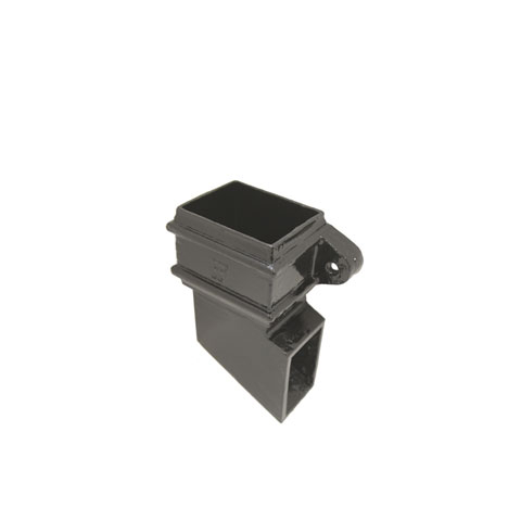 Cast Iron Rectangular Downpipe Right Hand Eared Side Shoe 150mm x 100mm - Black