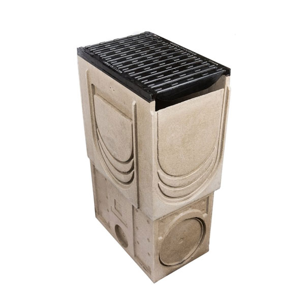 Channel & Grate: Polymer concrete with ductile iron edge rails. Multiple knockout sections offering a variety of inlet and outlet options. 1x 500mm ductile iron slotted grate.