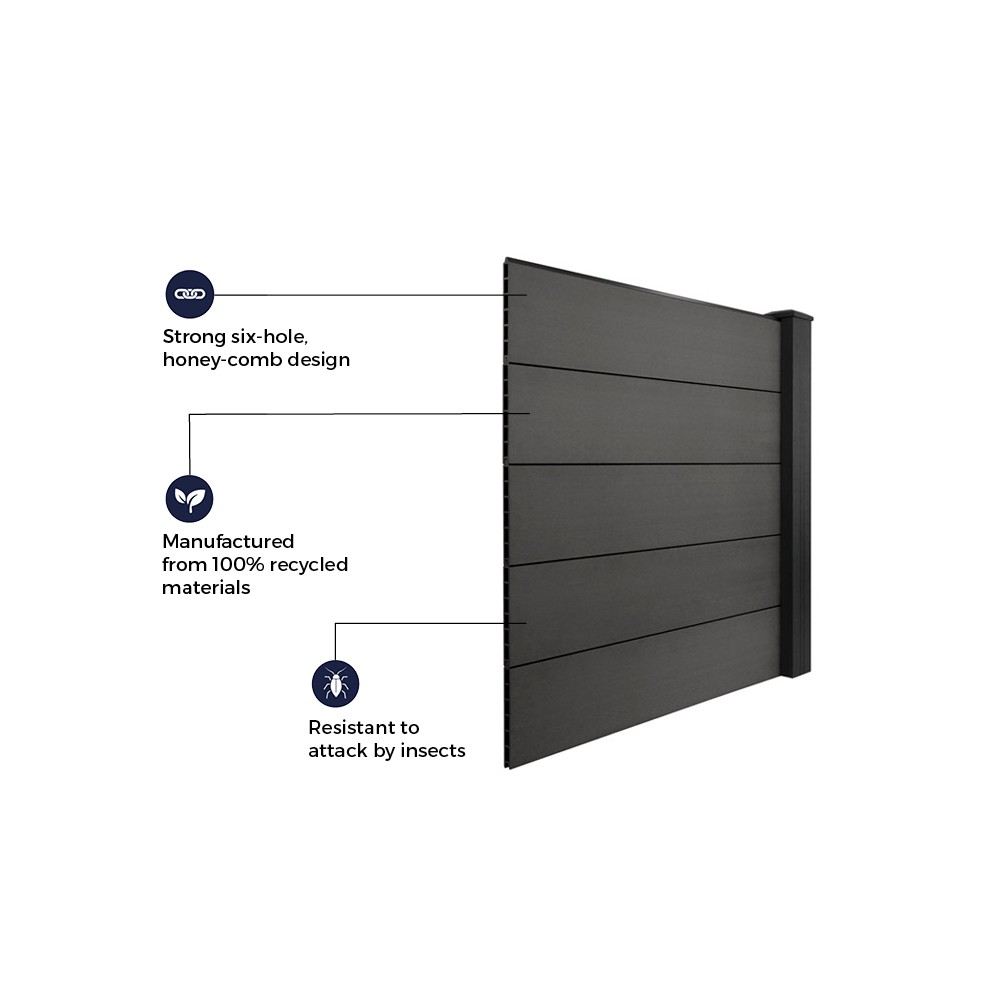 Installation is straightforward when you pair Cladco Composite Fence Panels with Cladco Hollow Composite Fence Posts. Secure the top and bottom of each panel to the fence posts to create a robust foundation. Each panel neatly slots atop the previously fitted board, or you can insert the boards into the fence posts. The grooves act as your guide, allowing you to create up to four channels per post. Simply slide the fence board into the grooves and your project takes shape.