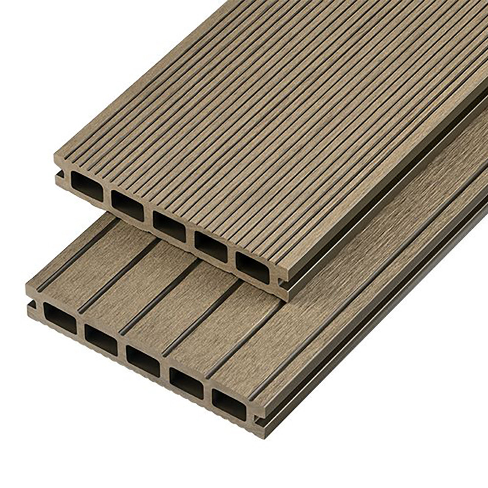 Bring a contemporary style to your garden, balcony or roof terrace with Cladco's 2400mm domestic grade Hollow Composite Decking Boards. These UV-resistant boards are made from 60% recycled hardwood and 40% recycled polyethylene to ensure longevity and durability. Whereas traditional timber decking is prone to warping, splintering and rotting over time, composite decking is versatile, easy to install, low-maintenance alternative.