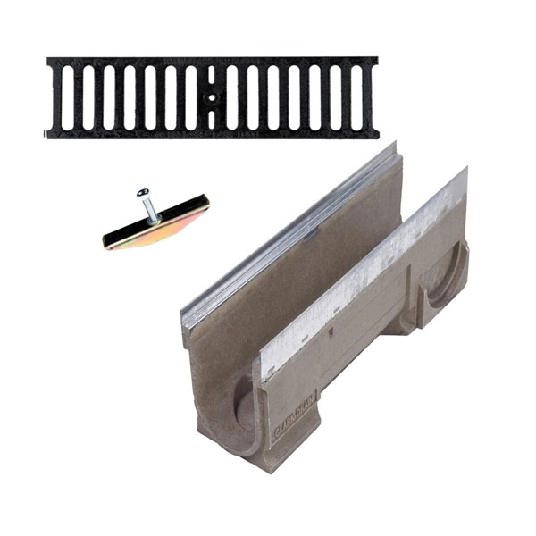 Channel & Grate: Polymer concrete with galvanised steel edge rails.