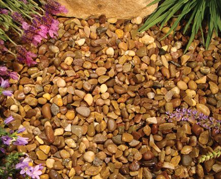 12-16mm Quartzite Stone. A rounded, brown and beige pebbly mix that shines in the rain.