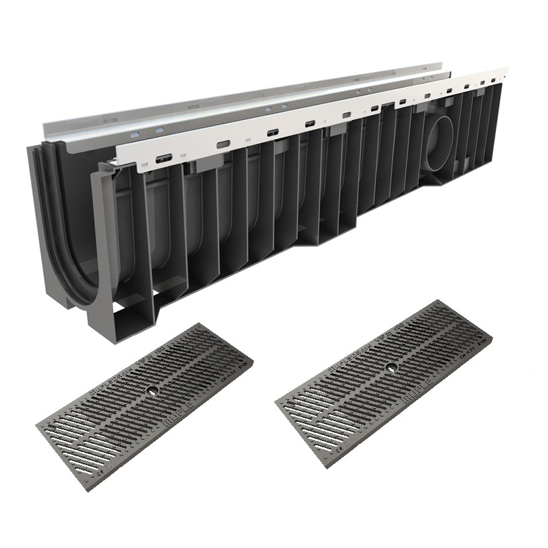 This C250 channel drain from Dek-Drain is manufactured from high density polyethylene for use in areas where traffic will not exceed the weight load class of 25 tonnes. Perfect for historic towns where traffic flow is slow and an original iron grating would be of aesthetic benefit, Dek-Drain have designed this channel and grate for use in kerbs and parking areas too.