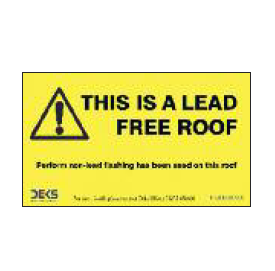 This is a sign that can be fixed onto the exterior of a building to state that there is no lead flashing on the roof, because the Deks lead flashing alternative is in use instead.  By stating that the roof of the building does not contain lead, you may deter potential le... Read More