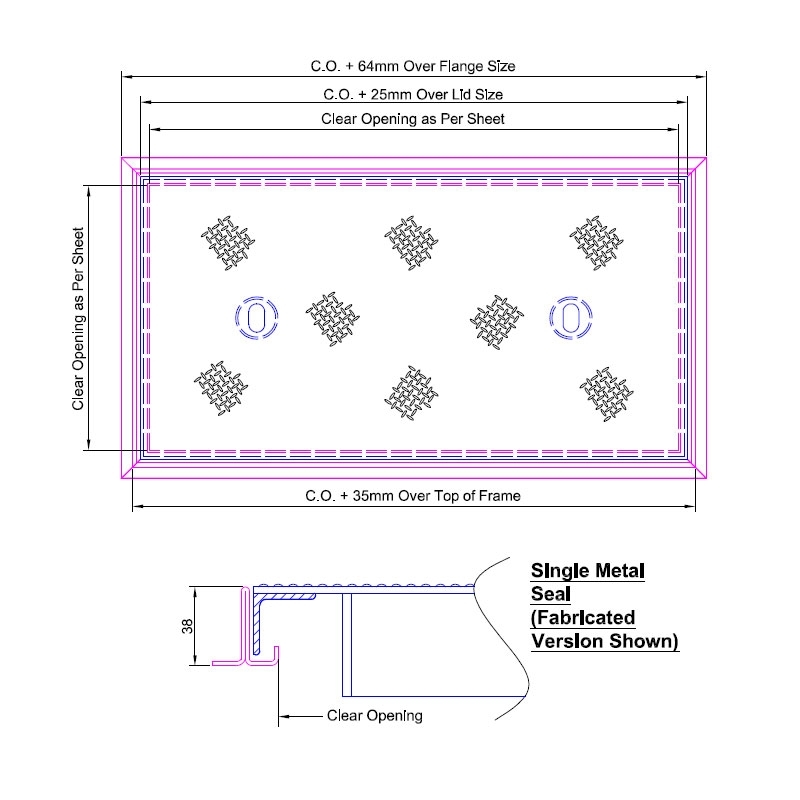 PS100  Series Solid Top Cover and Frame. 900x750mm Clear Opening. F. A. C. T. A Class AA 5T GLVW/1.5T SMWL.  Fabricated Lid, 38mm Deep Frame. Non Locking, Unit is Single Metal Sealed,  Mild Steel Galvanised to BS EN ISO 1461 after manufacture.     Read More