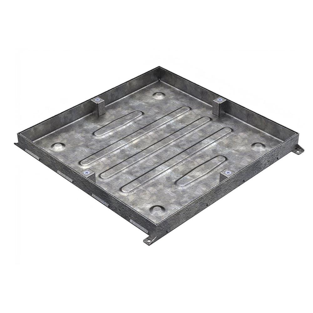 Made from galvanised mild steel, this Clark Drain Aqua Knight Recessed Double Sealed Locked Manhole Cover and Frame is ideal for high water-table areas and for light-duty seal and locking. It includes a 5 tonnes (GPW) load rating and load test data shows it can hold 12.5kN for 30 seconds.