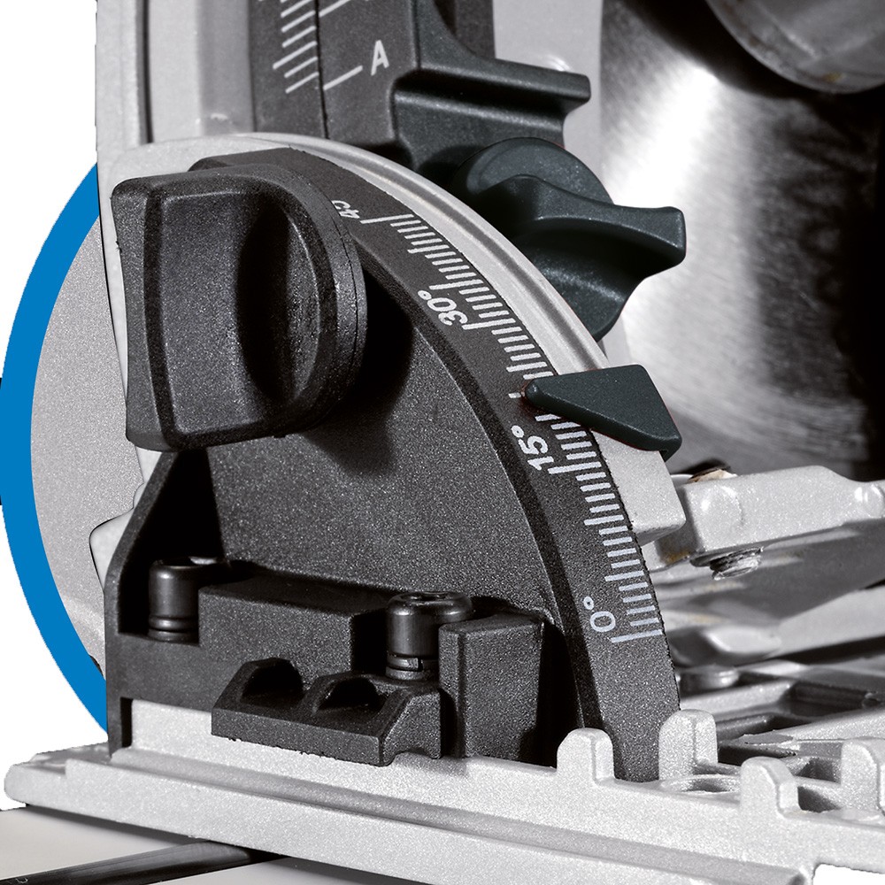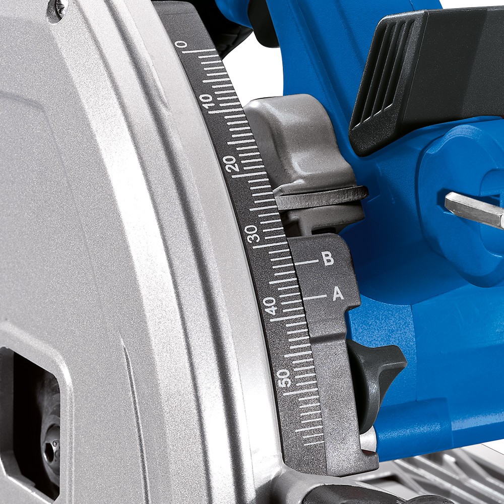 Features: Max cutting depth 55mm at 90 and 42mm at 45, 0 - 45 bevel cutting base, 2 x 700mm guide rails with anti - slip grips, Dust extraction fitting, Electronic brake, Spindle lock, Supplied with 24T blade and 2M cable with BS plug