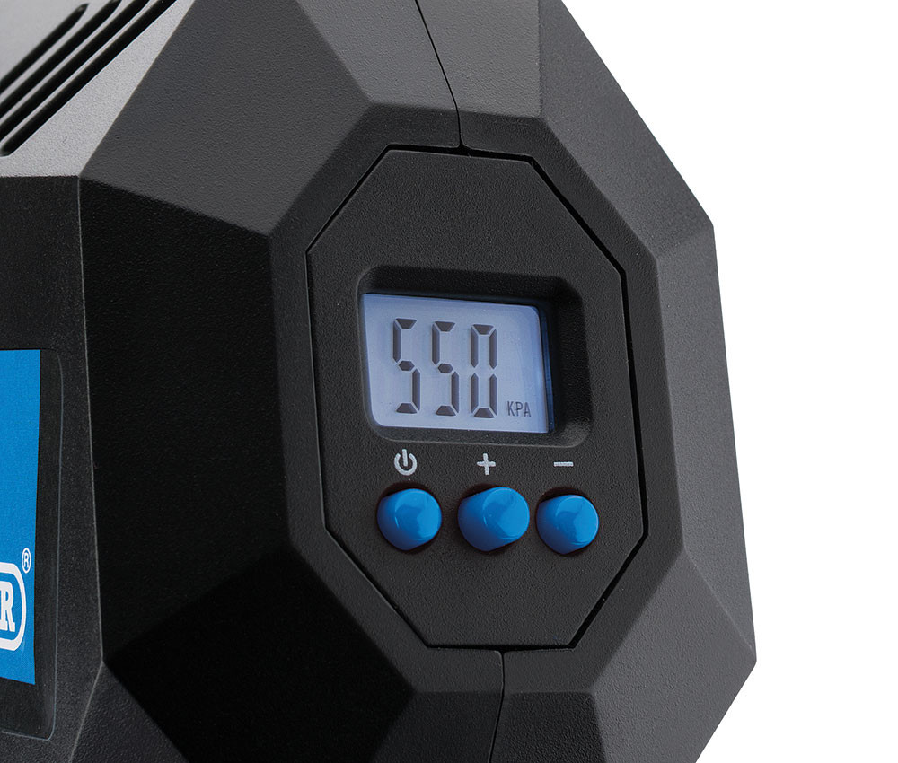 Alongside a variety of accessories, including a bag for storage and an emergency torch, this Draper Cordless Air Compressor 12V is an ideal option. It boasts a user-friendly interface with a digital display, facilitating effortless adjustments of PSI, KPA, and BAR settings.